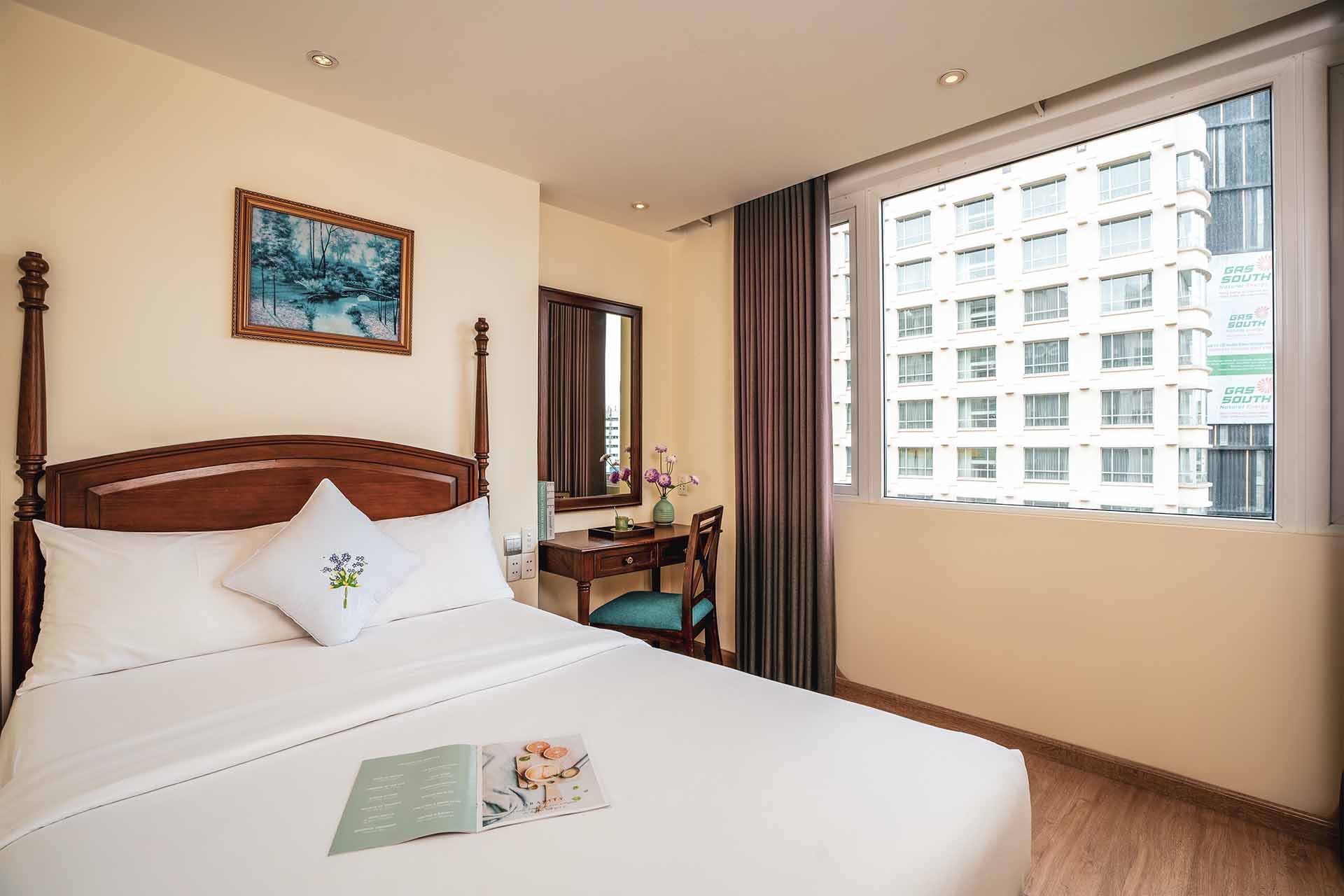 Welcome to the best four-star hotel in Ho Chi Minh City. The hotel offers luxurious and elegant furnishings. All accommodation is decorated with French colonial touches. It features a flat-screen TV, and free Wifi. The luxury marble bathroom includes a spa tub, bathrobes, and exclusive toiletries.