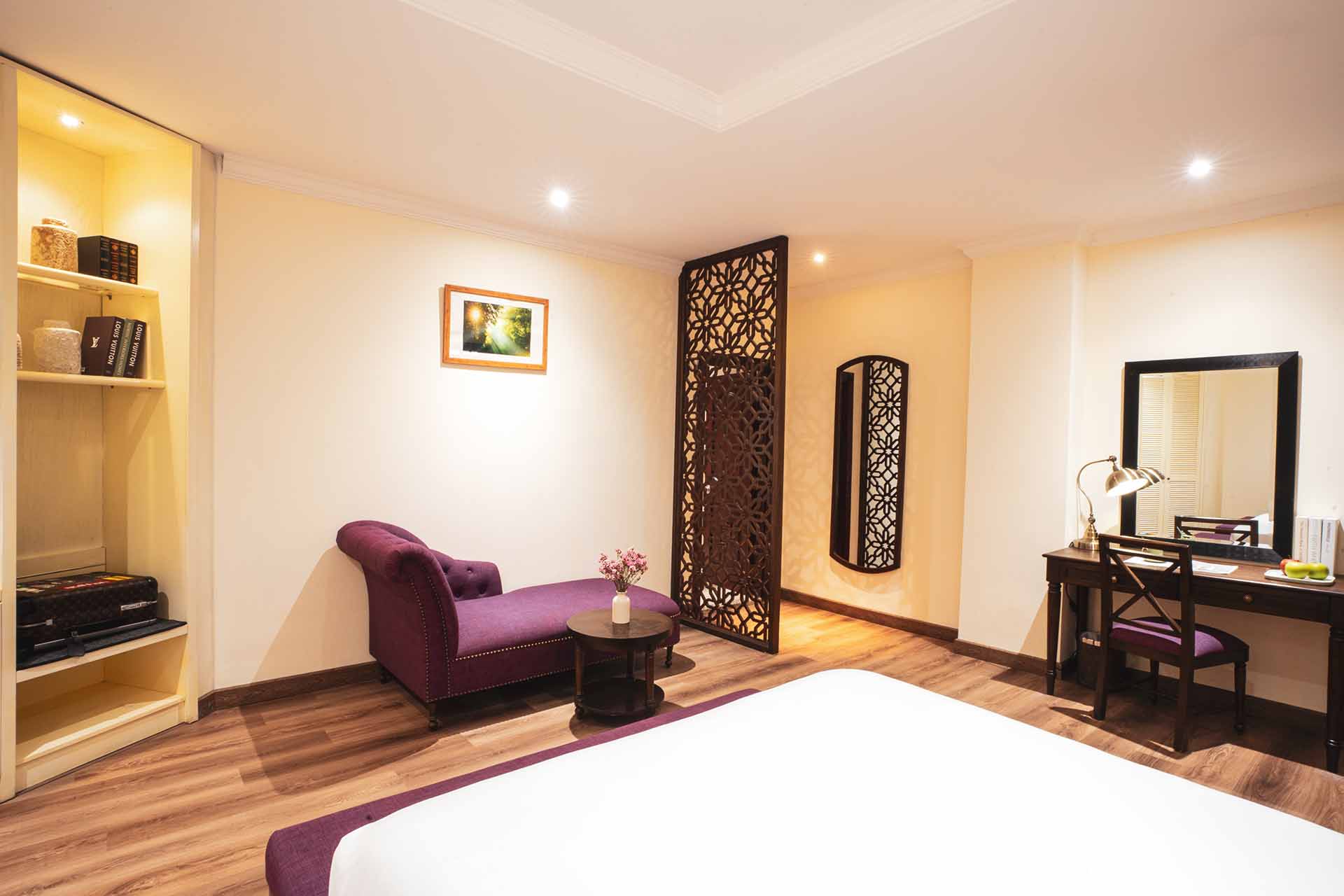 Welcome to the best four-star hotel in Ho Chi Minh City. The hotel offers luxurious and elegant furnishings. All accommodation is decorated with French colonial touches. It features a flat-screen TV, and free Wifi. The luxury marble bathroom includes a spa tub, bathrobes, and exclusive toiletries.
